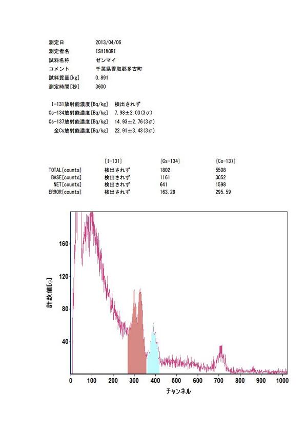 <測定情報/千葉県・ゼンマイ>小さき花に持ち込まれた、4月6日測定のゼンマイの測定結果です。セシウム合計:22.91±3.43 Bq/kg山菜はまだまだ注意が必要かもしれません。chiisakihana.net/?p=661 pic.twitter.com/OLULSmtLSu
