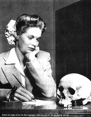 「これは状態の良いジャップです。ニューギニアビーチで死んだのを切り取ってきました」太平洋戦争の日本兵のトロフィー・スカル。