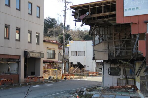 福島県富岡町、春には桜が咲き誇る夜ノ森地区。この先は『帰還困難区域』として封鎖されています。