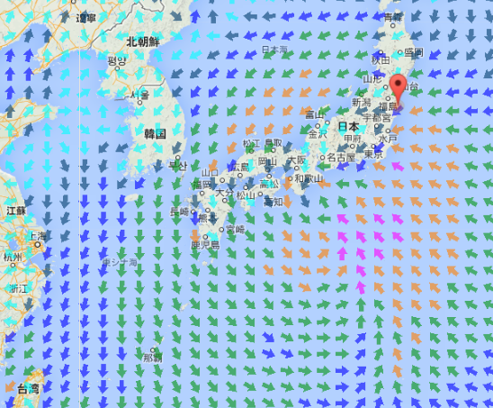 今日の夜までに、本州のほぼ全域は東電福島原発の風下に。それより前でも、西日本の広い範囲は風下です。