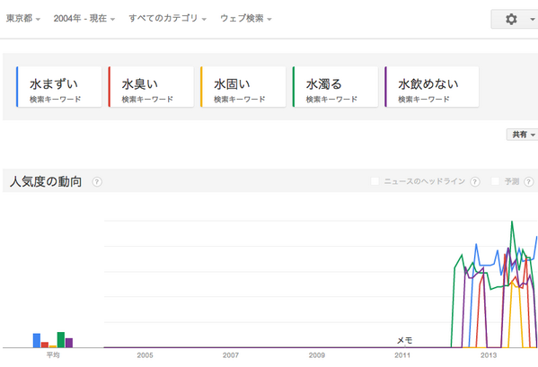Googleトレンド検索 水まずい 水臭い 水固い 水濁る 水飲めない