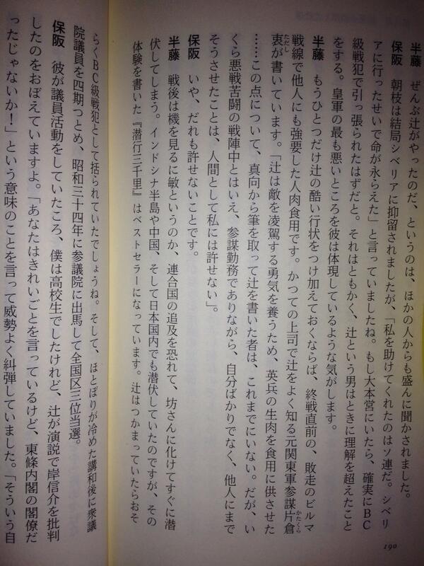 @onodekita @oldredelephant6 @orange519827 @irukatodouro @Japanese_Joke 辻政信が『精がつく』と言って、英米兵の人肉を旧日本軍兵士に食べさせたという実話を知らないんだな。知らずに食べた人は辻を許さないと言っている
