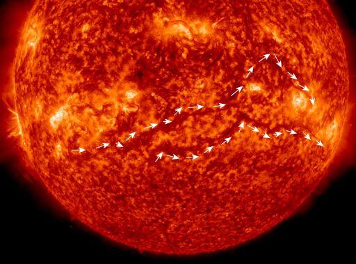 【地球滅亡キタ―――(゜∀゜)―――― !!】3/19の太陽表面に東西へ広がる二本のグレートウォールと呼ばれる太陽半径並みのフィラメントが生成した。これが弾けると、地球直撃の超・超弩級巨大太陽フレア(CME、X10)がやって来る pic.twitter.com/bpYV8ulVwQ