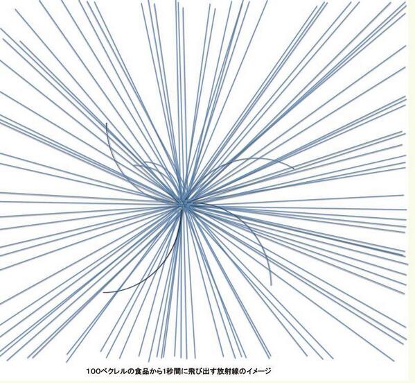 円弧を描いて出ているのが、食品基準では全く無視されているベータ線の飛んでいるイメージ。
