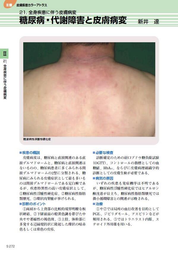 糖尿病の皮膚病変 昨日のたけしのテレビでは赤いぽつぽつが出ると初めて聞く話をしていた。医師会の生涯教育シリーズを見ると、添付のように書かれている。あのテレビは本当のことか? pic.twitter.com/SQj5VREGqT