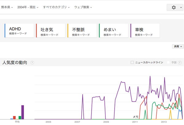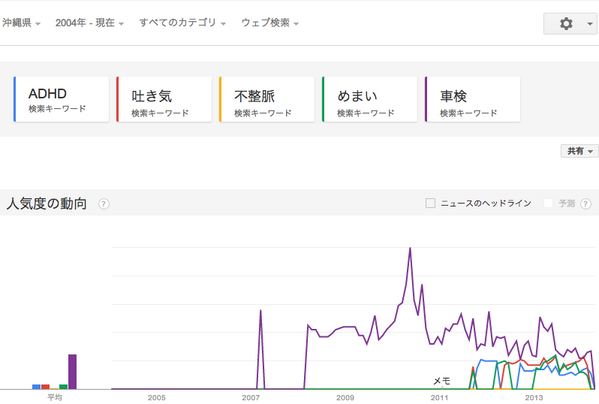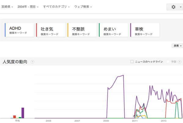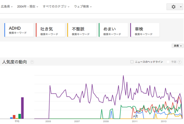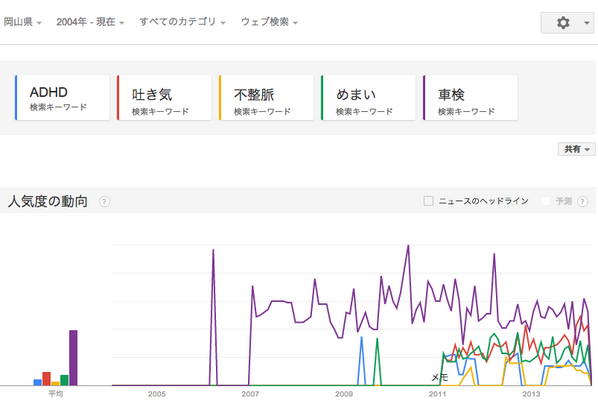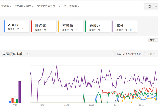 ADHD 吐き気 不整脈 めまい そして 車検 でGoogleトレンド検索。