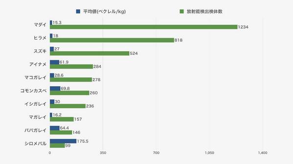 「食品の放射能検査地図 海水魚編」