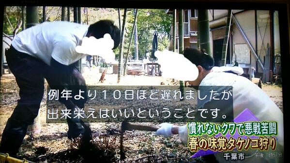 楽しそうにタケノコ狩りしているんだけど、基準値以内だからかなあ(-""-;) pic.twitter.com/PNNS3ikjX6”