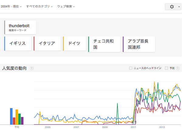 thunderbolt で Googleトレンド検索 イギリス イタリア ドイツ チェコ共和国 アラブ首長国連邦 pic.twitter.com/p3eSDTIElN