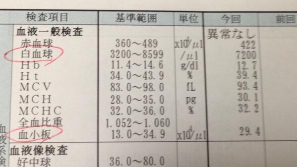 鼻血が出た人に→血液検査をして血小板の数を調べて下さい。白血球、リンパ球、好中球、血小板の数値をアップして下さい。