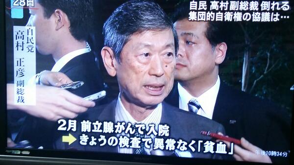 高村副総裁、「貧血」で一晩入院!!
