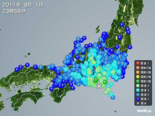 2011年8月1日23時58分ごろに起きた駿河湾を震源とするマグニチュード6の地震 pic.twitter.com/A1VGCkrdMm