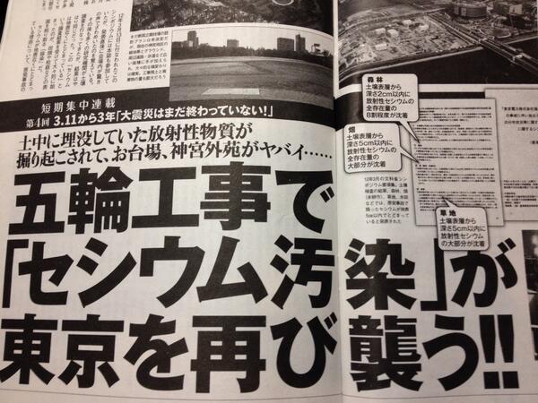 最新号のプレイボーイ。セシウムは地表面5cmに居座っている為、工事で道路を掘り返したりする度に空気中にセシウムが舞う。東京オリンピックの準備が本格化し大規模工事が次々と着工。都民の体内に放射性微粒子が知らないうちに蓄積されているという pic.twitter.com/0gx94s0ShH