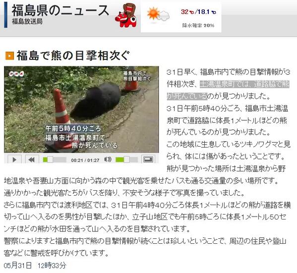 @Tanisennzo 熊の次は人だな。。道路脇で熊が死んでいる pic.twitter.com/H6fZywguc3 #Nuclear #Bear exposure, dead