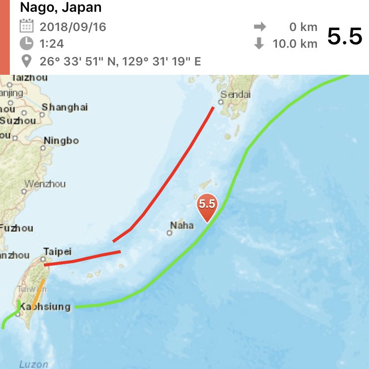 9月16日1時24分にもマグニチュード5.5の地震。ただちょっと群発地震と言うには地震の規模がデカすぎる。 https://pic.twitter.com/sjcMXWVCPj