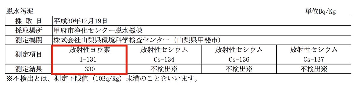 ヨウ素131 330Bq/kg 検出 https://pic.twitter.com/m2djaNzzuG