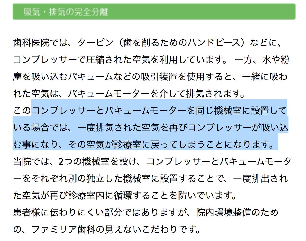 歯医者ヤバイ。 感染症の予防なんてできるわけがない。 切削した重金属がバキュームとドリルで循環している。 http://familiar-dental.com/clinic/