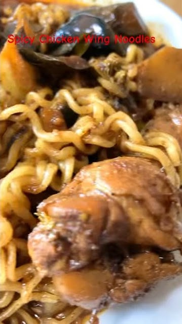 手羽元のカレーを作り、茹でたインスタントラーメンを絡めました。