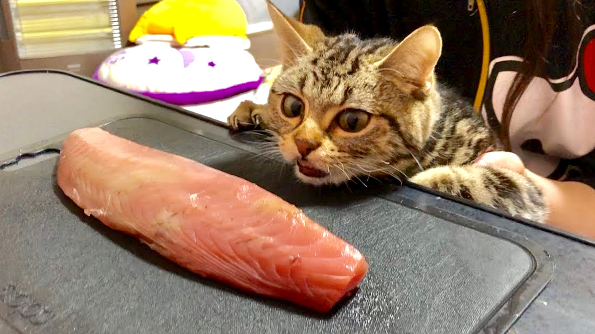 巨大なカツオをプレゼントされた猫さん。テンションが急上昇しちゃう様子がとっても可愛かった♡ | エウレカねこ部ある日、一緒に暮らしている猫さんにカツオをプレゼントした飼い主さん。するとすぐに猫さんが興奮しながら近づいてきて、カツオの様子をまじまじとうかがい始めました♪ 出典:ちょりちゃみチャンネル そんな猫さんの反応を気にしつつも、猫さん用のカツオを切り分けた飼い主さん。それを一度お湯で茹でた後、お皿の中に入れました。 出典:ちょりちゃみチャンネル するとさっそく…nekobu.net