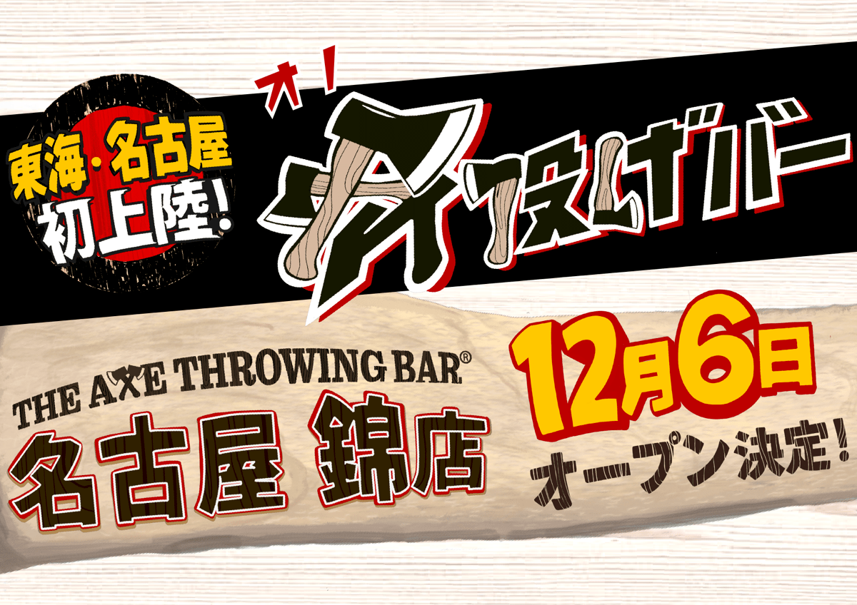 【東海・名古屋エリア初】斧投げバー”THE AXE THROWING BAR®︎ 名古屋 錦店”が2022年12月6日(火)にオープン決定!株式会社BrickWallのプレスリリース(2022年11月17日 12時10分) 東海・名古屋エリア初 斧投げバー”THE AXE THROWING BAR(R)︎ 名古屋 錦店”が2022年12月6日(火)にオープン決定!prtimes.jp