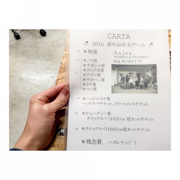 年始のお楽しみが今年もやってきます!? そうです。 こちら、、 豆つかみゲーム。そこには、夢がありプライドがあり意地があります。 商品も豪華 ん、? 特賞が一番と思いきや、ハラ賞 ReFa 4CARAT豪華すぎる、、、スタッフが選んできた賞もありますので、それも狙ってください✨1月末までゲームはしていますので練習きてお待ちしてます🙌✨ via Yuta Kuninaga's Ownd Your own website, Ameba Ownd