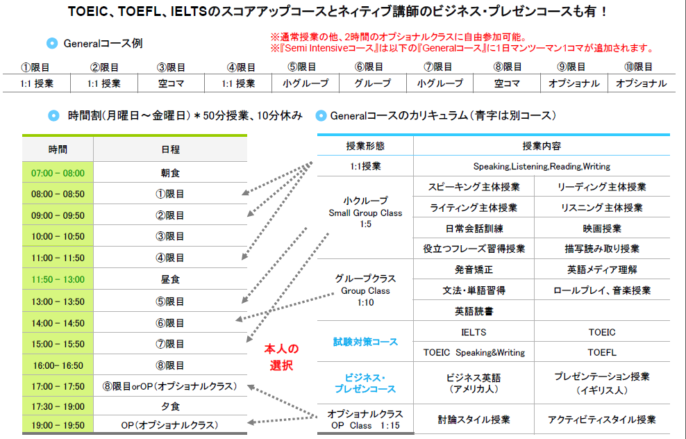 総合英語力をつけるためのプログラムの時間割をこちらにのせておきます^^