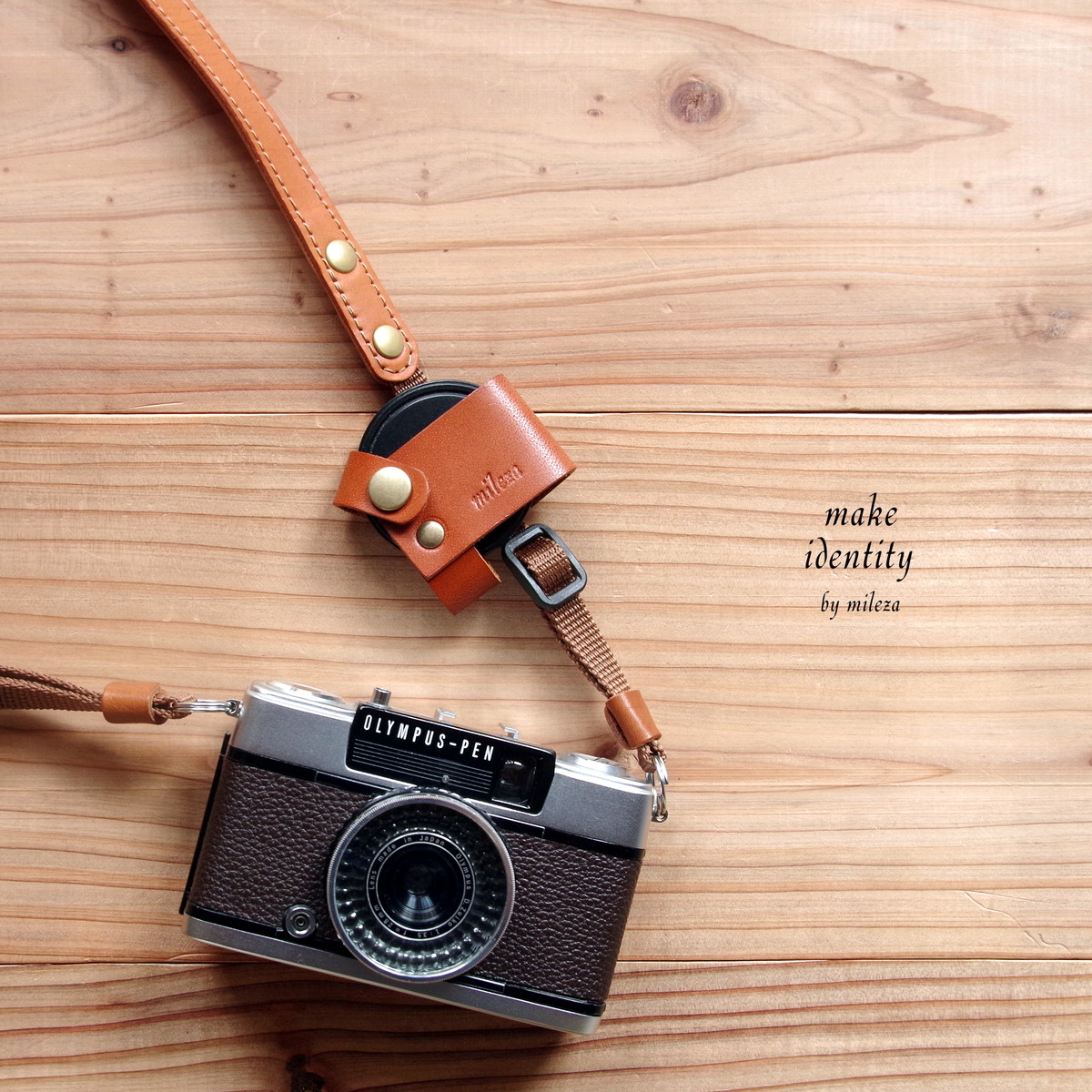 この形の革製レンズキャップホルダーというのは市販品では無いんじゃないかなと思っています。