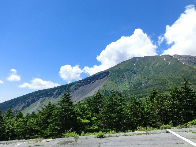 パッと視界が広がったら乗鞍岳が見えました。万年雪まで