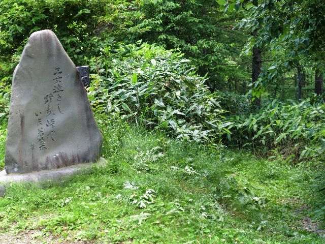 道標どおり少し山の方に上がるとエコーラインです。八ヶ岳は雲の中