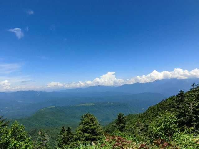 エコーラインを蓼科の方に向います。写真は見えずらいですが、茅野の街が見えてます。