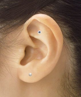 耳に接着するところに1mmの24金粒がついていて、ツボを常に刺激します。