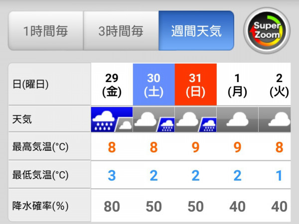入砂ポイントは曇のち雨、最高気温も一桁😰