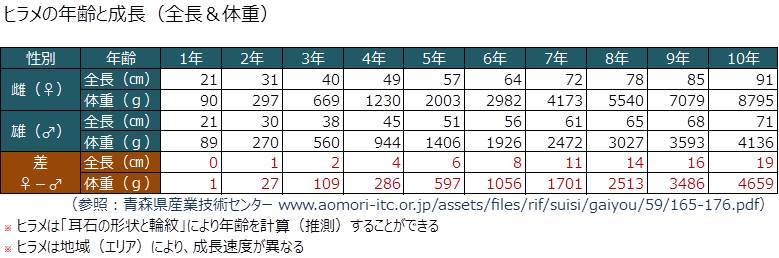 また、ヒラメは雌(♀)と雄(♂)では成長速度が異なることも知られています。