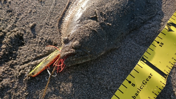 2ヶ月間ぶりにヒラメ、サイズは小さいけど…嬉しさMAX⤴⤴⤴