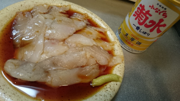 久しぶりのふなぐちにマゴチの刺し身で一杯