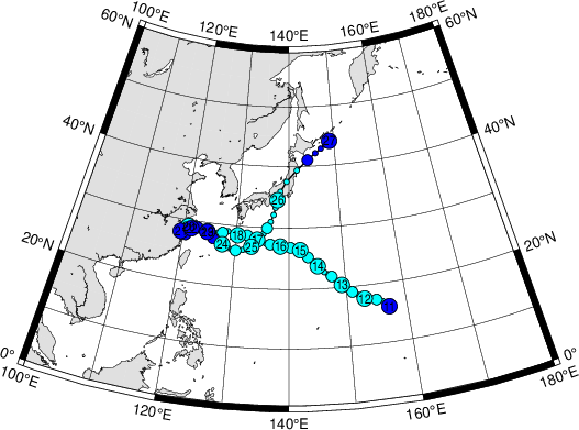 台風1号としては過去2番目に遅く、台風1号にして統計史上初めて猛烈な勢力になった台風。
