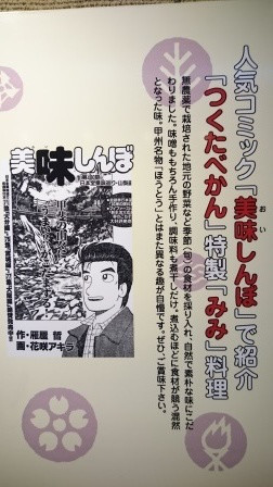 ここ「つくたべかん」はあの美食漫画「美味しんぼ」に紹介された処です。
