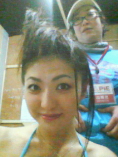 2日目PIE2008 2日目いってきました。プロカメラマンの藤城一朗先生☆PENTAXの講演会トークショーに出演されてて、何故か、写真を撮ろうとすると、必ずお茶を手に持ってお茶の宣伝をするお茶大好きのお茶目な先生(笑) 同じ事務所のあややん♪今日誕生日でした☆おめでとちゃ~ん(^3^)/明日も頑張るマン(^-^)/
