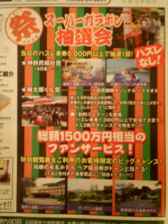 小田原競輪初日行ってきました。今回は、3ヶ月に一度のお祭り開催で、様々なイベントが開催されています。今回の冠レースのスポンサー神静民報社さんからは、スーパーガラポン抽選会で当たる、箱根ユネッサンや大磯ロングビーチのペア入場券や、特別観覧席ご利用のお客様に、抽選で箱根有名ホテル一泊二食付きペア宿泊券など、他にもたくさん提供いただきました!ペア宿泊券が当たる抽選会の方は、第9レース終了後バンク内にて実施致します。その際司会の方もやらせて頂きます。