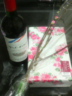 白木さんからお土産にワインとお菓子と梅の華を頂きました。梅は春の気配を感じる華で大好きです。