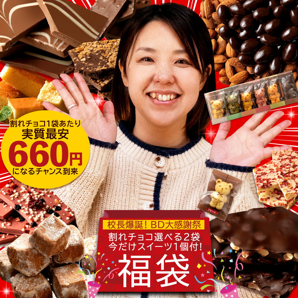 \今だけ選べる 厳選スイーツ1点がついてくる/ 割れチョコ 大浜スイーツアカデミー「絶対後悔させない!37種類より選べる割れチョコ最大200g×2袋セット +今だけスイーツ1点 福袋 」 送料無料 [ チョコレート チョコ カカオ ] お買い物マラソン SALE セール楽天市場${EVENT_LABEL_01_TEXT}