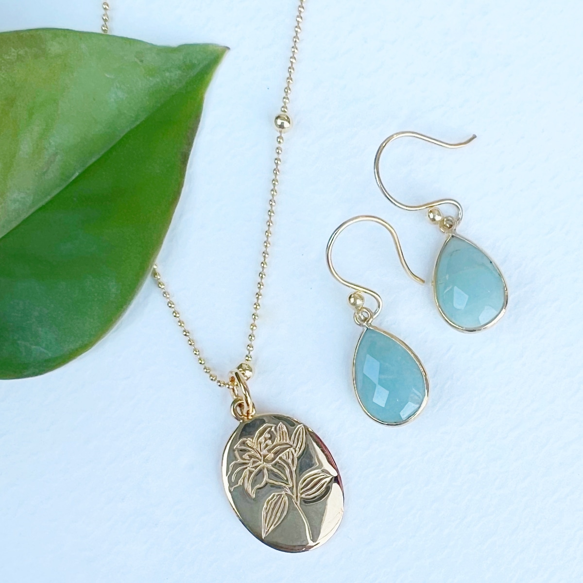 こちらはミルキーアクアマリンをご試着中です。