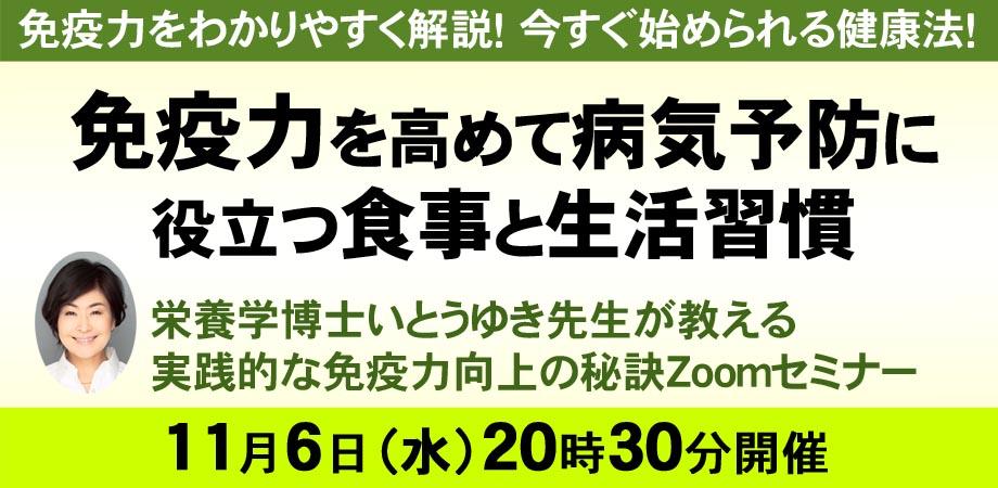 このセミナーでは、免疫力を高め、病気を予防するための食事や生活習慣を学びます。栄養学博士のいとうゆき先生が、風邪や肺炎、がんリスクの低減に役立つ実践的な指導を行います。