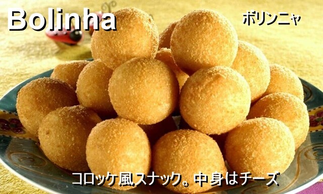 サウガヂーンニョスは、揚げ物を中心とした軽食で、Salgadinhos(塩気の小さいもの)という名前が示す通り、スナック菓子風の食べ物です。