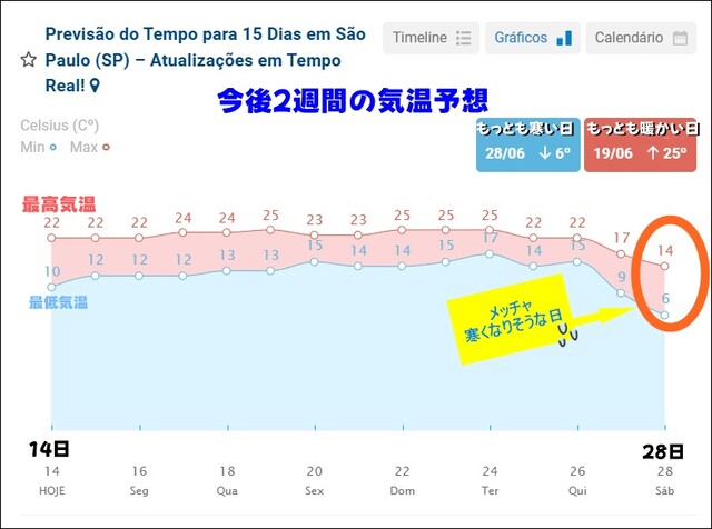 天気予報では、今後2週間はまあまあ暖かい日が続くけど、月末にはまた急激に気温が下がると予測しており、サンパウロっ子たちは、また寒さでふるえることになるようです。