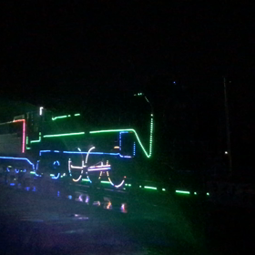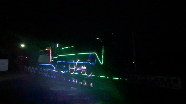 西古川駅の保存SLライトアップ