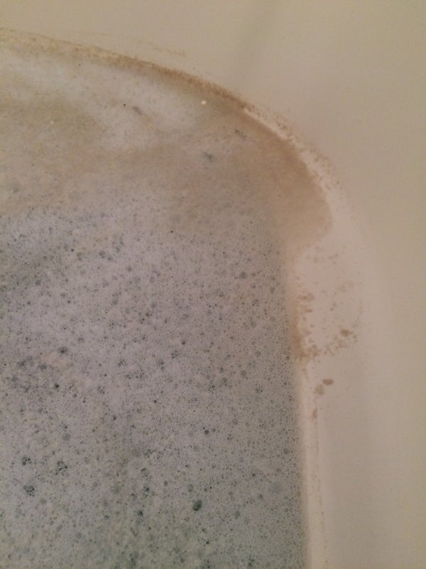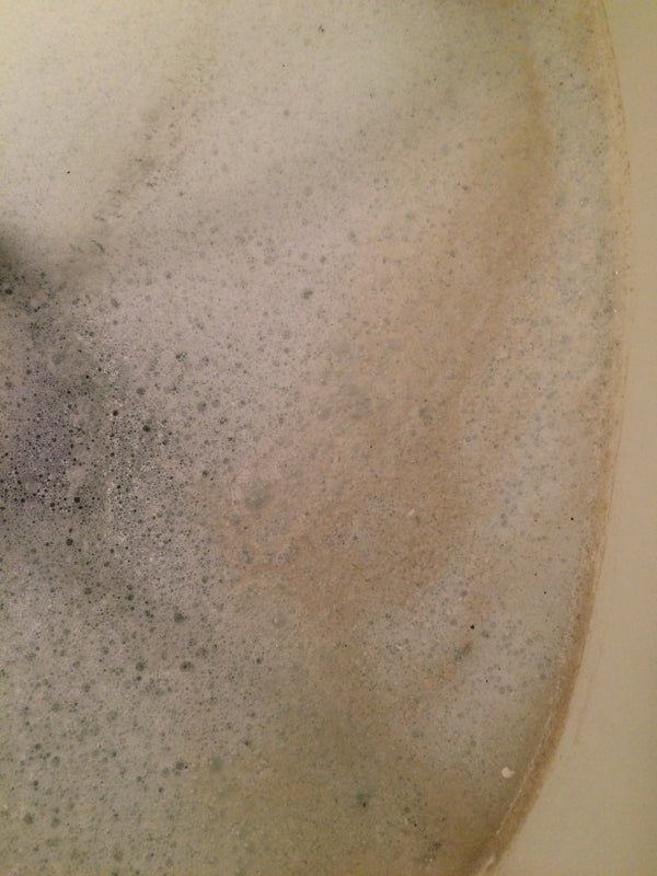 雑菌と皮脂が出て来ました。 写真では、分かりづらいですが白い破片も混ざっていました。 洗浄が終わり、追い炊き運転して濁らない事を確認して頂き、終わろうとしたところ 入浴剤を入れて追い炊きすると白く濁るんです・・・ という説明を受けたので、 いちよ入浴剤を入れての追い炊き、自動運転は控えて頂いたほうが良い事を 伝えさせて頂きました。 入浴剤を入れたまま追い炊き運転、自動運転にしてしまうと風呂釜(給湯器)と 浴槽間の配管の中に入浴剤が入り込んでしまいます。 出来るだけ入浴剤を入れた時は、リモコンのスイッチを切りましょう。 自動でも、浴槽内のお湯の温度が下がるとかってに追い炊き運転をしてしまいます。