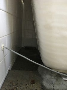 やむなくお客様にご説明させて頂き、浴槽裏の高圧洗浄へ変更です。