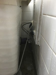 まずは、給湯器の追い炊き配管の洗浄からスタートして、浴槽下の高圧洗浄をして