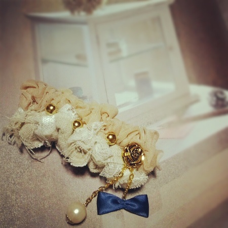 まずは、金古美のピラミッドスタッズに大きめのボルドーのベルベットリボン♪